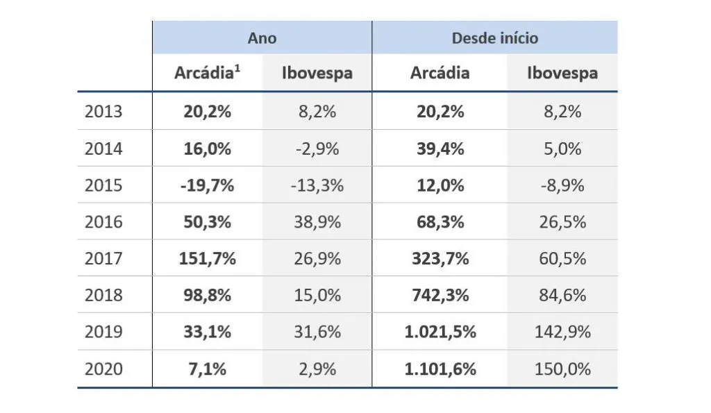 Temos algumas novidades para 2021. A primeira é que o Ivan Barboza, um dos sócios fundadores do Ártica deixou a prática de M&A para se dedicar exclusivamente à gestora da empresa. Além da vinda dele, nós reforçamos nosso time de análise, e agora estamos com uma equipe de 5 pessoas no time de investimentos. Outra mudança é que, para facilitar nossa comunicação, decidimos unificar a identidade da nossa empresa em torno de uma única marca: Ártica. Com isso, nosso fundo Arcádia FIA irá passar a se chamar Ártica Long Term FIA, unificando a nossa marca Ártica com a nossa filosofia de investimentos