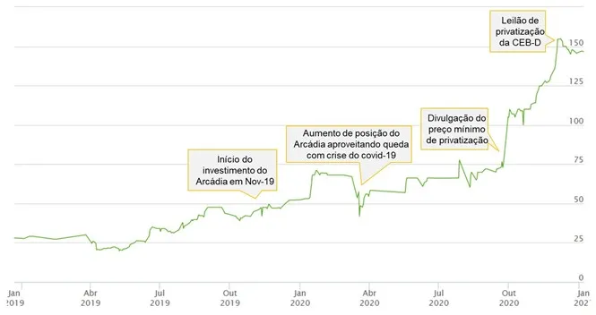 Mesmo após a privatização da CEB-D (que deve ser concluída até março de 2021), ainda acreditamos que a CEB continua sendo uma excelente oportunidade de investimento e a mantemos na carteira do Arcádia.
