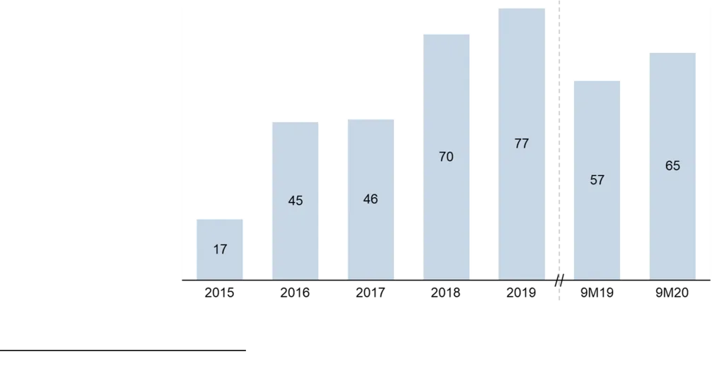 Encerramos 2020 com um retorno anual de 7,1%, superior ao Ibovespa e ao CDI que totalizaram, respectivamente, 2,9% e 2,8% no período. O retorno acumulado desde o início do Fundo, há cerca de 7 anos e meio, é de 1.102%, o que representa um retorno anualizado de 39,2%: