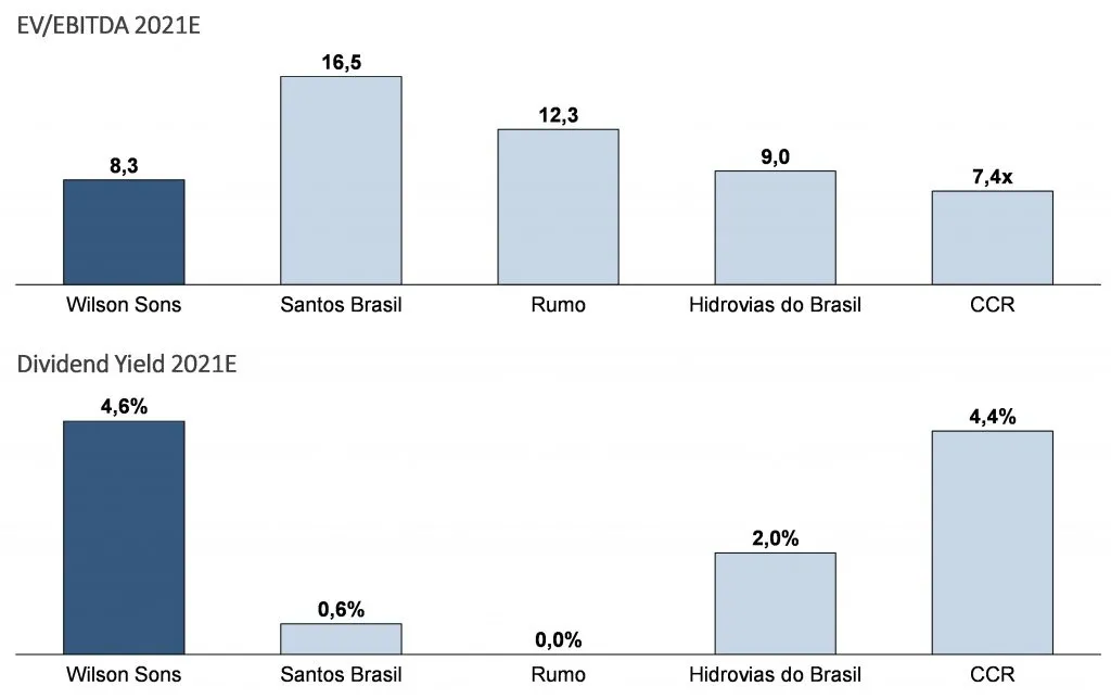 Em termos comparativos, a tabela abaixo mostra que a Wilson Sons ainda é a empresa mais barata do setor: