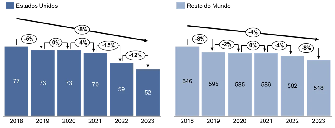 Passado um ano desde que nos tornamos acionistas da BAT, o cenário não mudou tanto em relação ao que analisamos no momento da compra. O cigarro tradicional continua em declínio nos principais mercados e os NGPs continuam com seu crescimento impedido por barreiras regulatórias e produtos ilegais continuam atendendo a maior parte da demanda. A evolução regulatória ao redor do mundo tem sido extremamente lenta e ainda está caminhando na direção de ser mais restritiva aos vapes, e não menos.