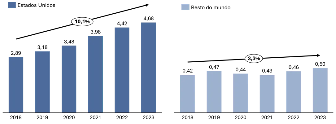 Número de cigarros vendidos por geografia (bilhões de unidades)