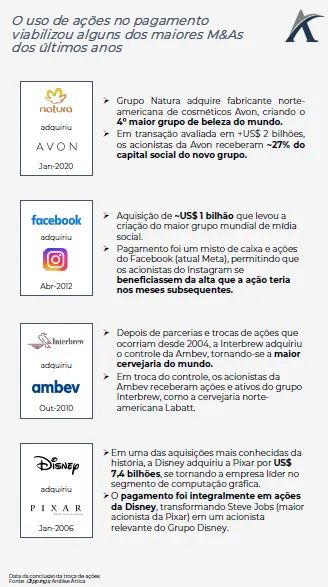 A seguir, conheça algumas transações emblemáticas que envolveram ações no pagamento.