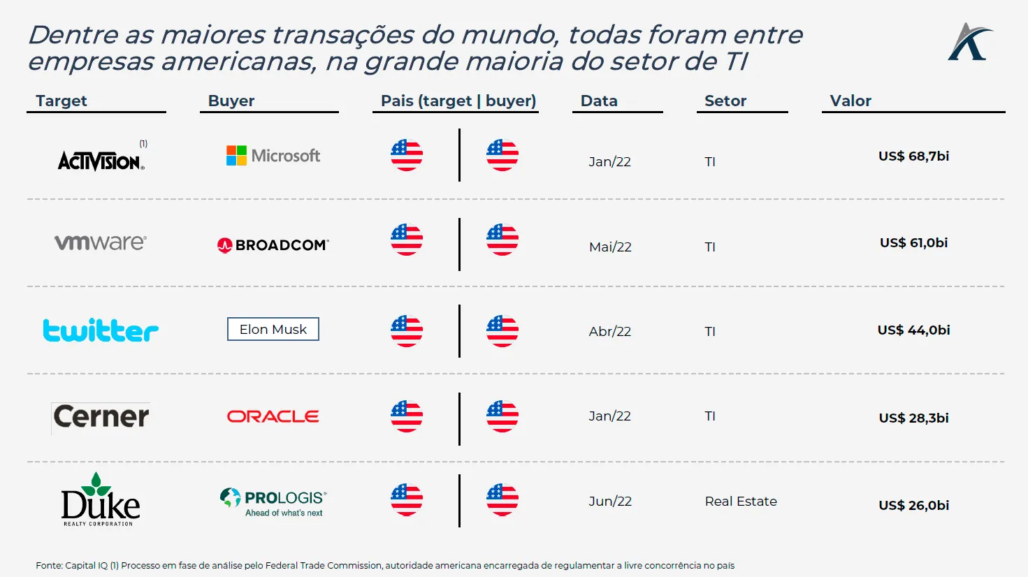 Relembre, na pílula de hoje, as maiores transações do Brasil e mundo no ano de 2022: