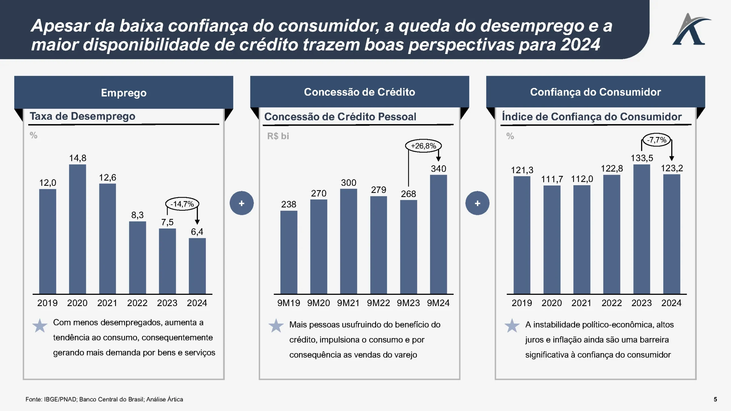 As perspectivas para 2024 são promissoras, com a redução do desemprego e o aumento na oferta de crédito, que consequentemente fortalece o consumo. Com mais pessoas empregadas e maior acesso ao crédito, há uma tendência de alta na demanda por bens e serviços, o que deve beneficiar diretamente o varejo neste fim de ano. No entanto, desafios como a inflação elevada, juros altos e instabilidade econômica, ainda impactam a confiança do consumidor.