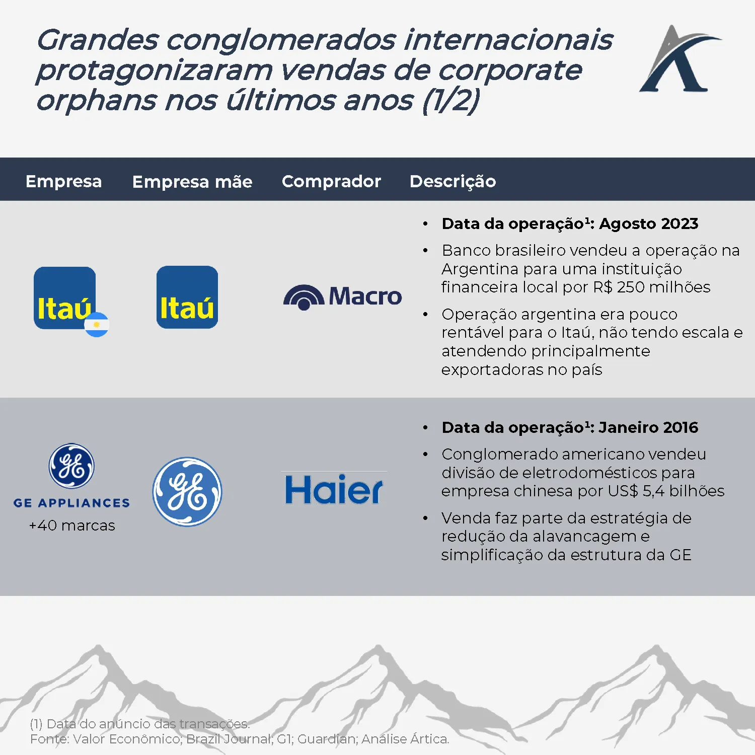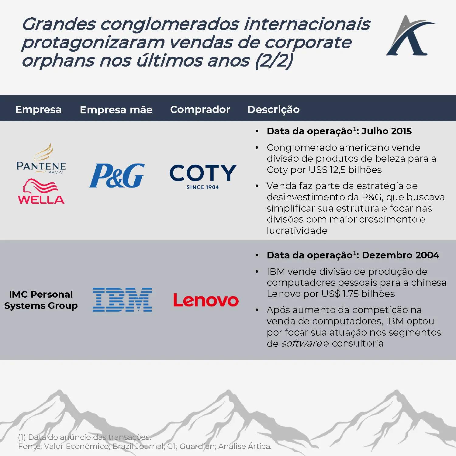 Conheça aqui algumas transações recentes envolvendo grandes grupos internacionais e seus “filhos órfãos”.