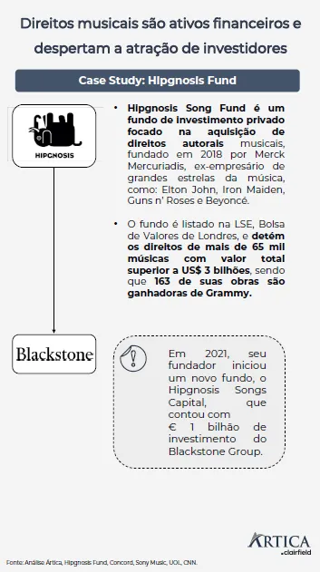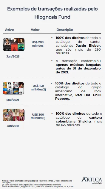 Fundos como o Hipgnosis, fundado por Merck Mercuriadis e listado na Bolsa de Valores de Londres, têm desempenhado um papel fundamental na atividade de M&A, atraindo investidores para um segmento em crescimento, onde os ativos são valorizados em milhares de dólares.