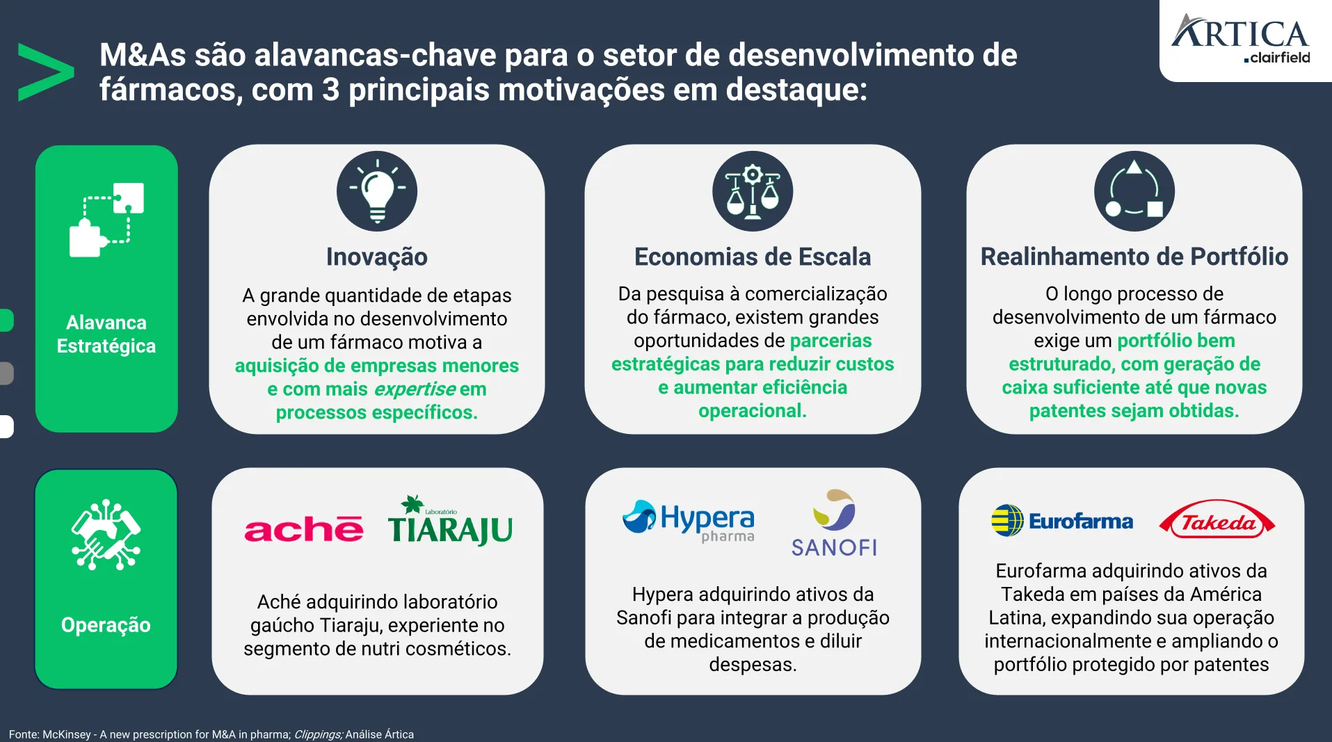 A pílula de hoje destaca quais as principais motivações estratégicas para realização de M&As no setor de fármacos, trazendo exemplos de transações envolvendo companhias brasileiras.
