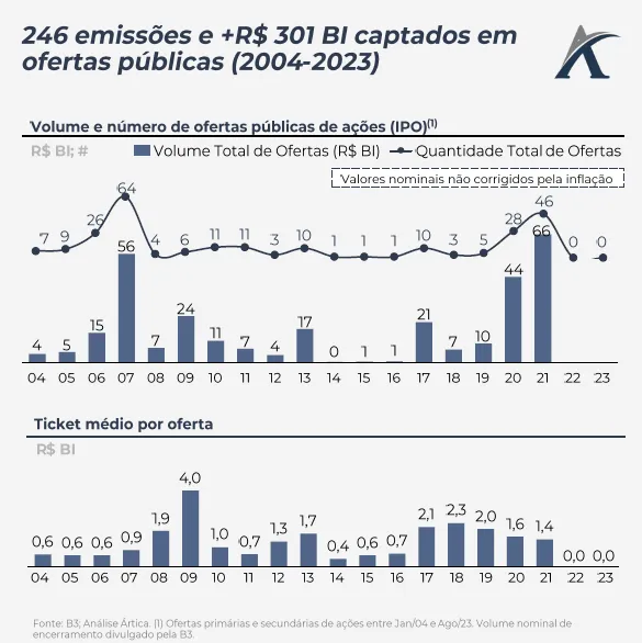 As janelas de IPO impactam diretamente o volume e número de ofertas iniciais de ações no Brasil.