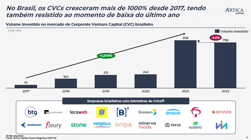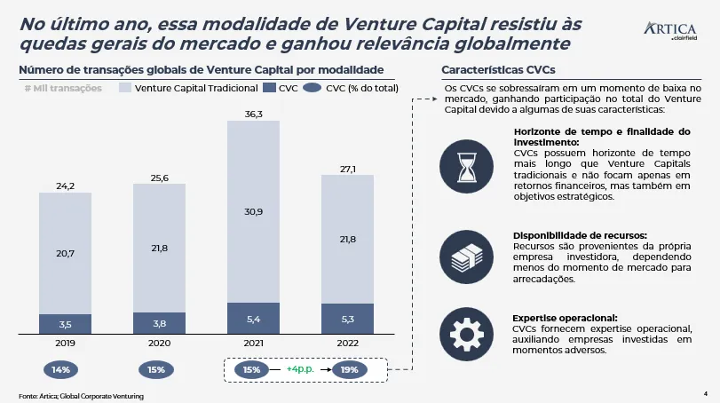 Grandes companhias investem em startups buscando inovação por meio dos Corporate Venture Capitals. Esta modalidade de Venture Capital ganhou relevância nos últimos anos, tendo se sobressaído mesmo em um momento difícil para ativos de risco em 2022.