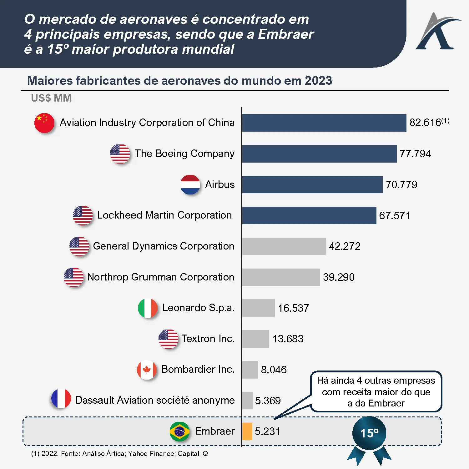 O mercado de produção de aeronaves é um setor altamente competitivo, sendo dominado por grandes players globais. Entre as empresas que se destacam nesse setor, a Embraer, com sede no Brasil, ocupa um papel de grande relevância. Fundada em 1969, como uma empresa estatal, a Embraer é uma das maiores fabricantes de aeronaves do mundo, tendo passado por um processo de privatização e abertura de capital na bolsa de valores.