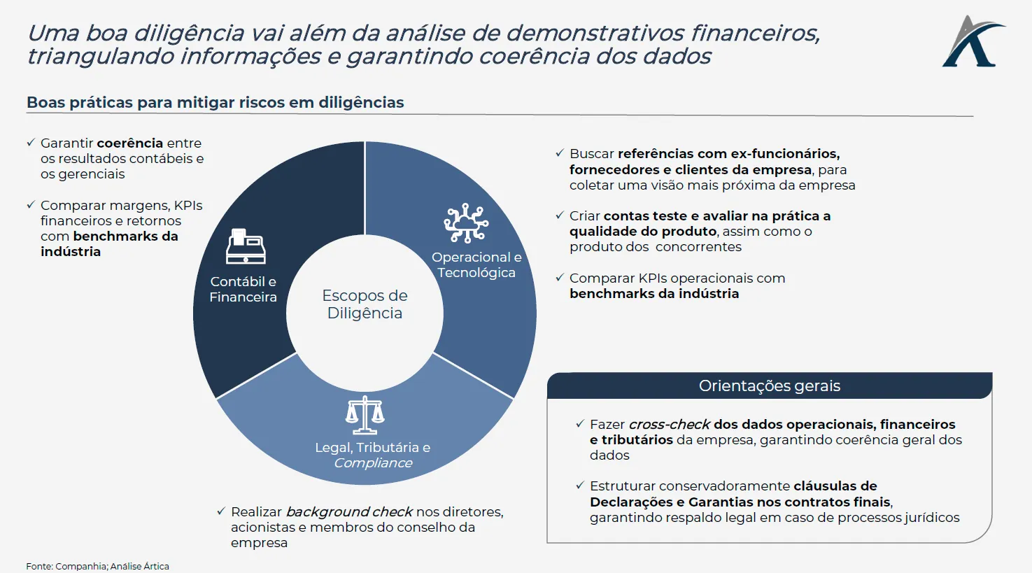 Uma boa diligência vai além da simples análise de demonstrativos financeiros, exigindo triangular dados financeiros, operacionais e até tributários, para minimizar o risco de fraude e de surpresas desagradáveis após a conclusão da transação.