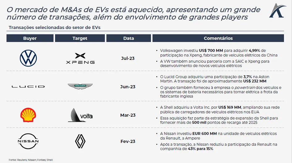 A seguir, apresentamos as principais tendências do mercado de EVs e algumas transações realizadas esse ano.
