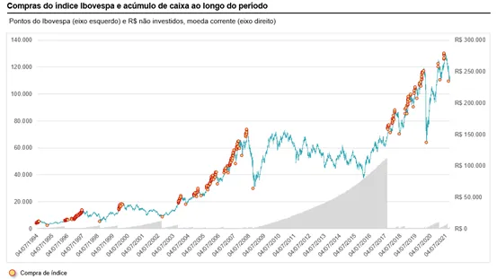 Gráfico 2.A – representação gráfica das compras da estratégia (ii) aportes recorrentes – Ibovespa