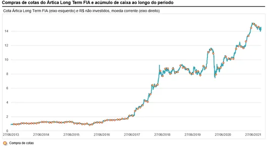 Gráfico 2.B – representação gráfica das compras da estratégia (ii) aportes recorrentes – Ártica Long Term FIA