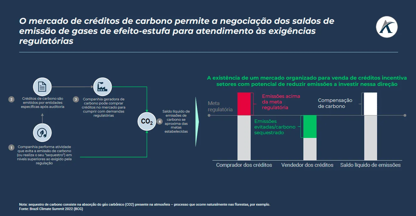 O mercado de créditos permite o encontro dessas duas pontas, incentivando aqueles capazes de reduzir suas emissões a dispender os recursos necessários para tal e, então, se aproveitar das vendas dos créditos gerados.